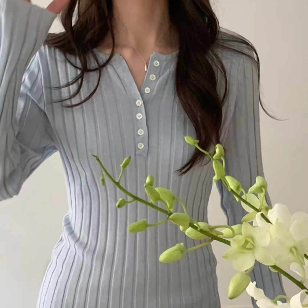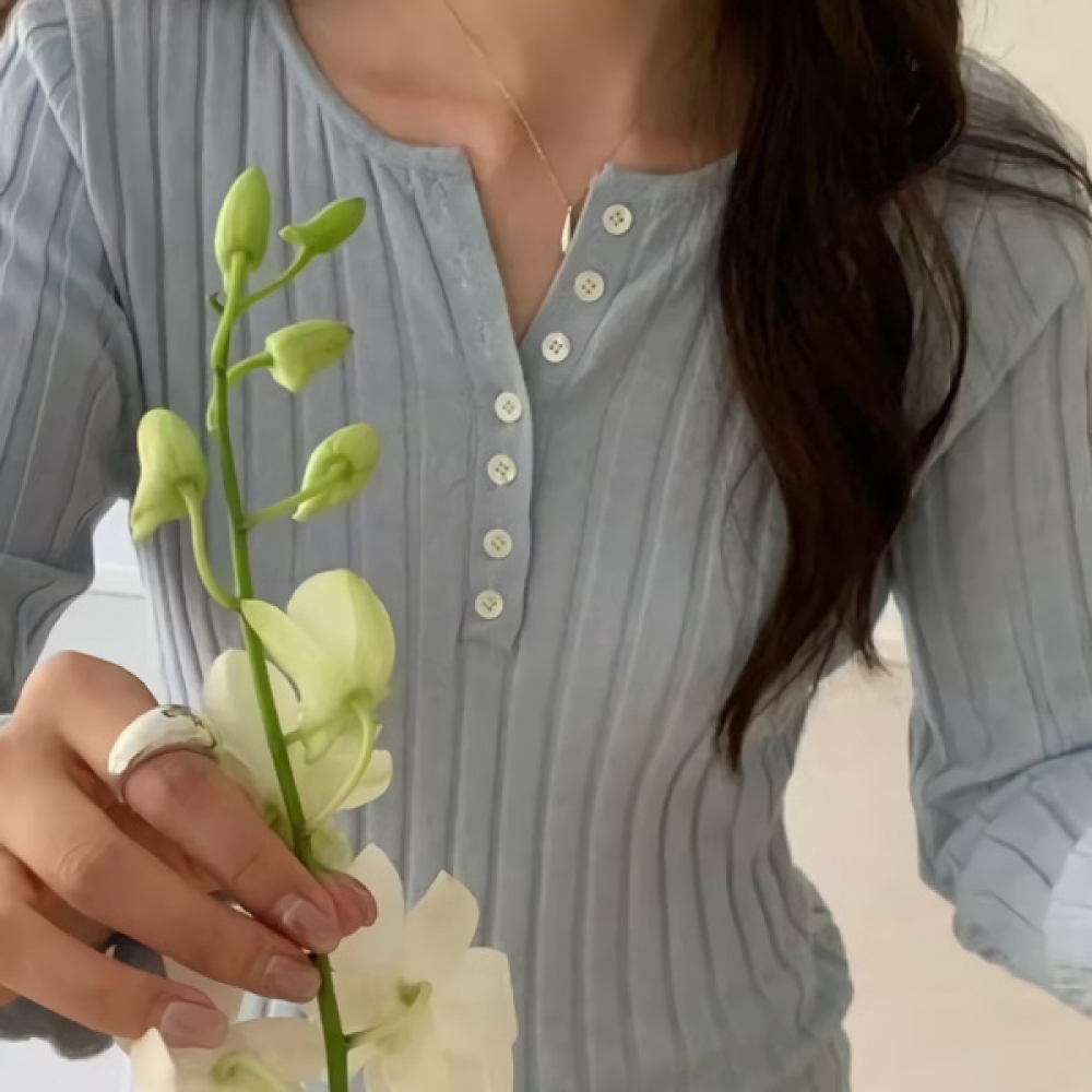 여성 봄 여름 데일리 니우 버튼 골지 니트