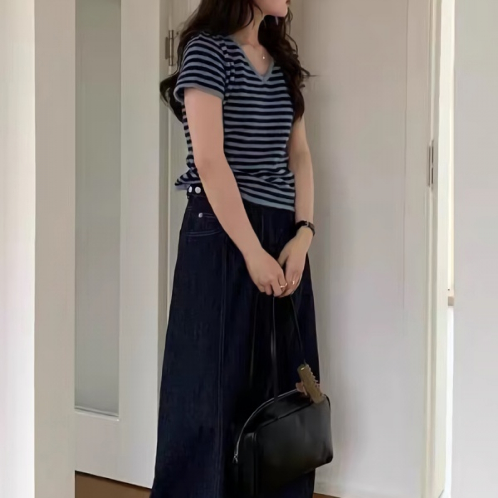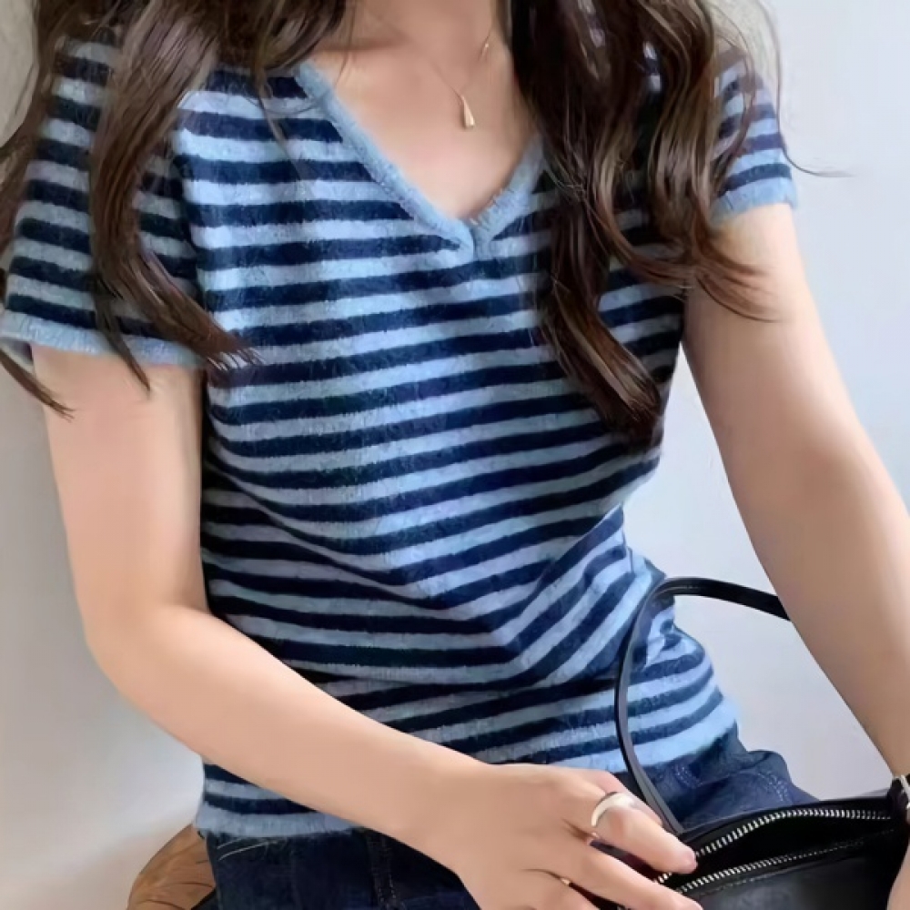 여성 봄 여름 데일리 브이넥 반팔 니트