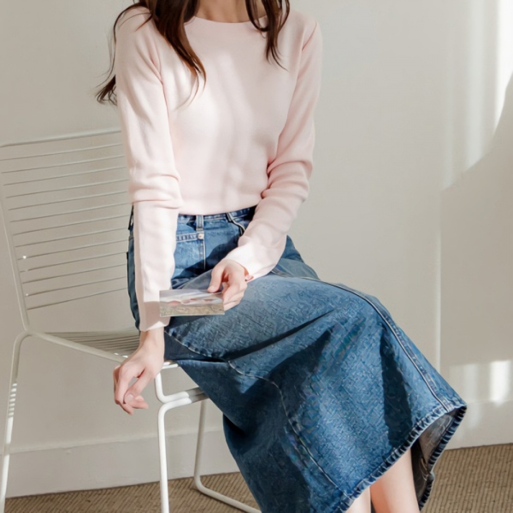 여성 봄 데일리 심플 보트넥 긴팔 니트