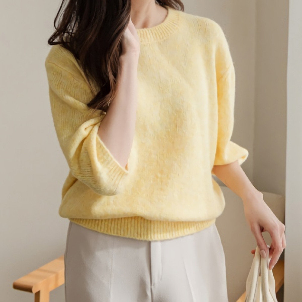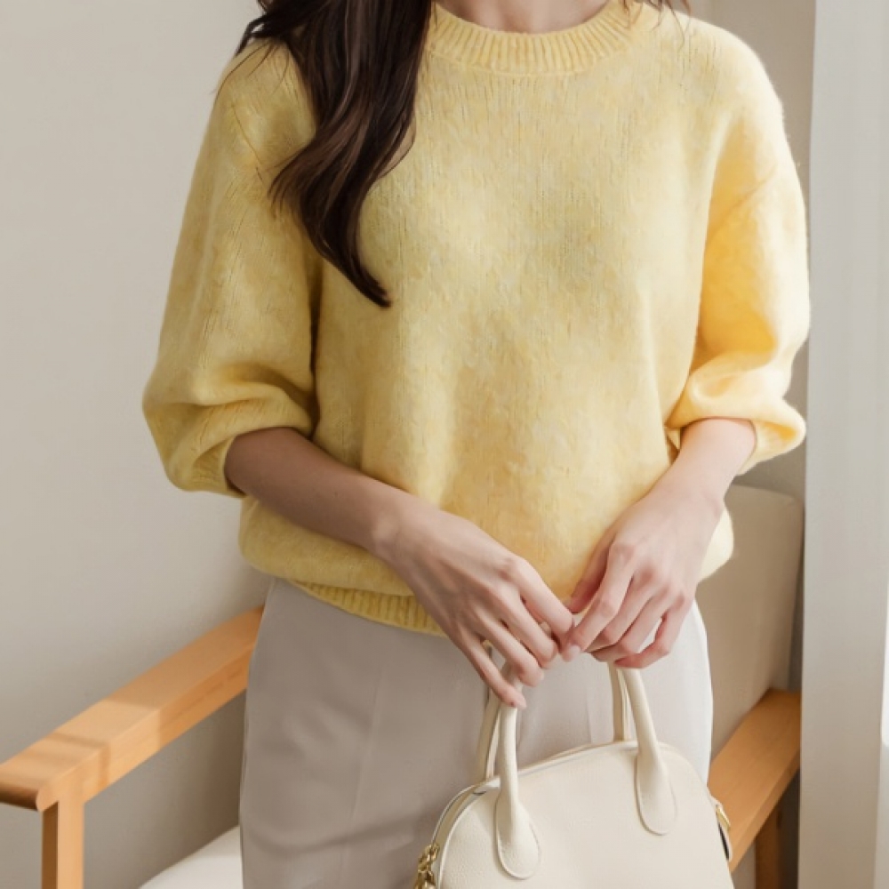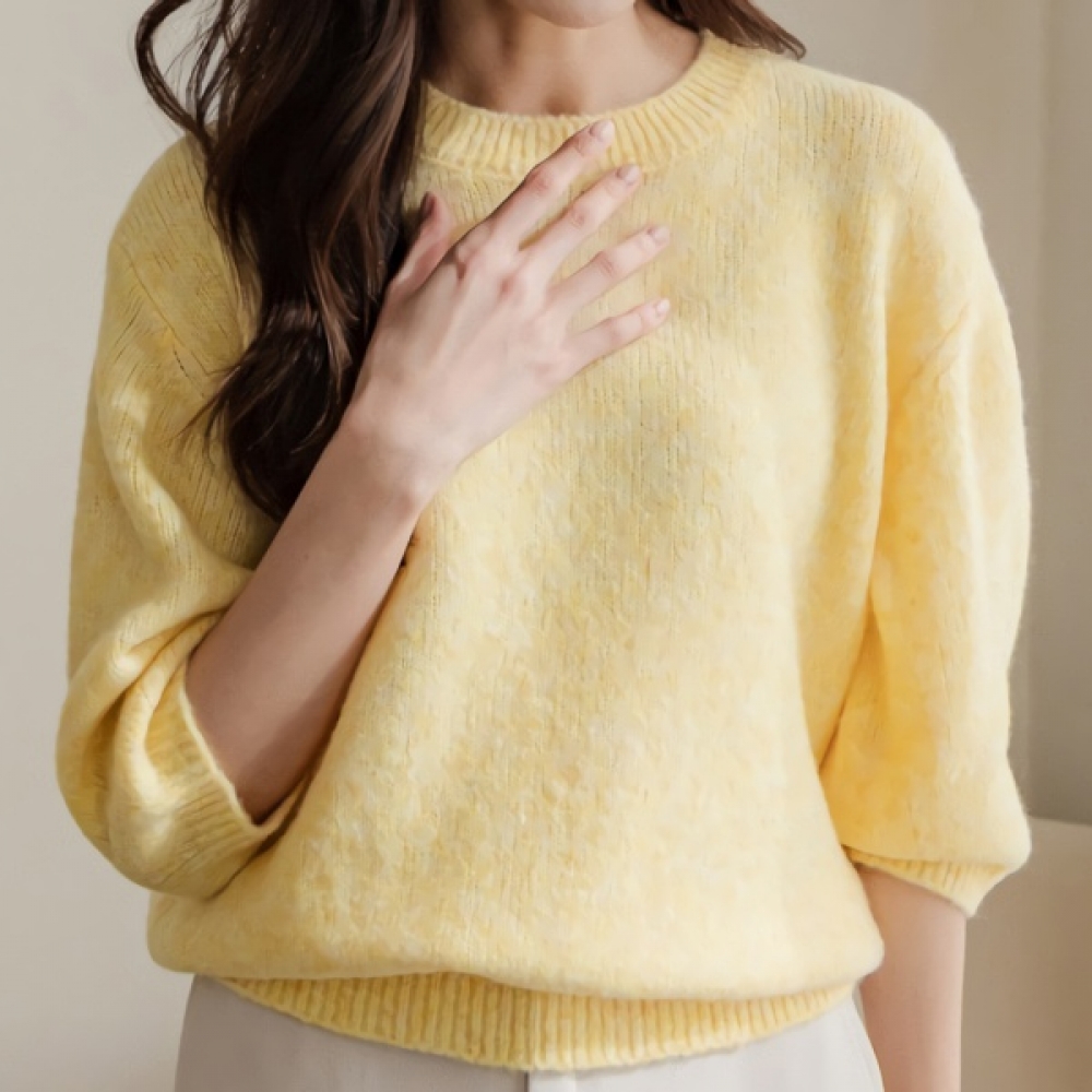 여성 봄 캔디 볼륨 퍼프 5부 라운드 니트