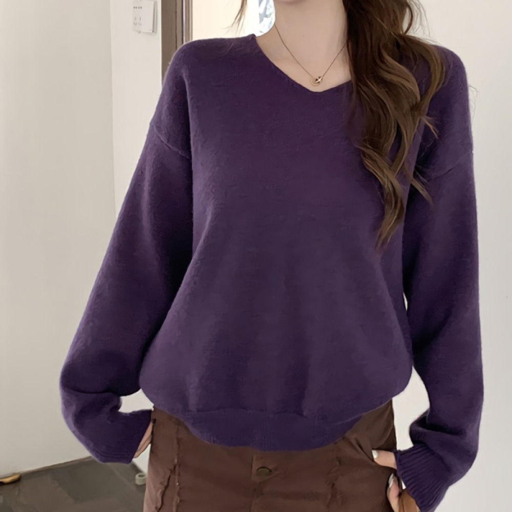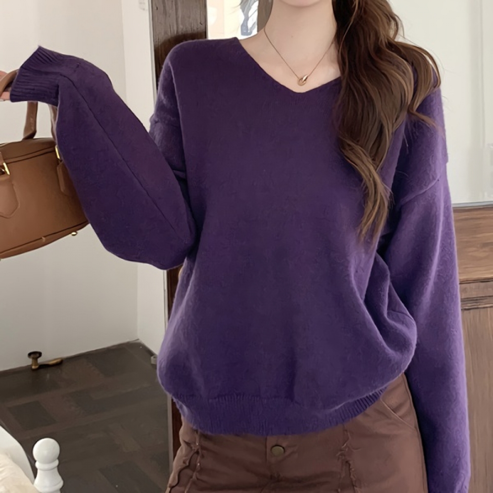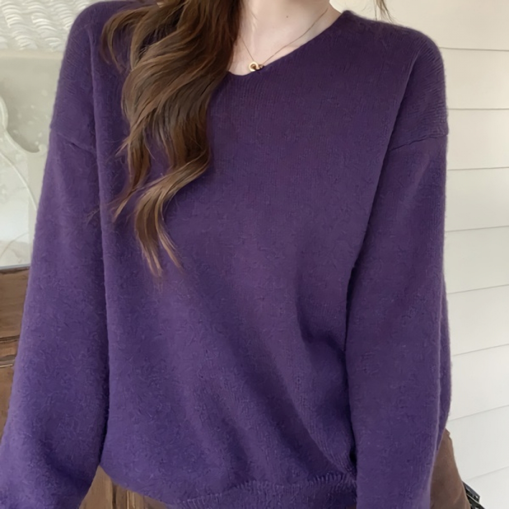 여성 봄 퍼플 브이넥 스트링 니트