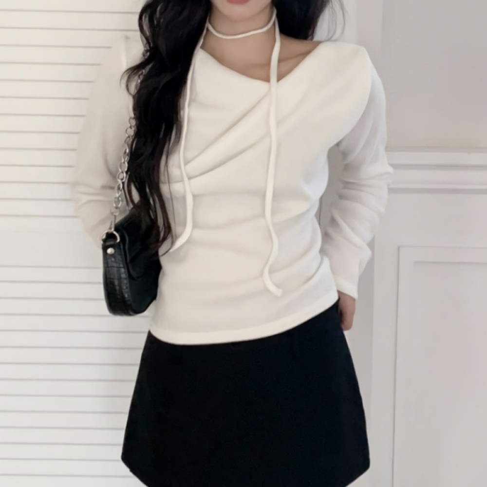 여성 초커 드레이프 셔링 잘록핏 원 오프 니트