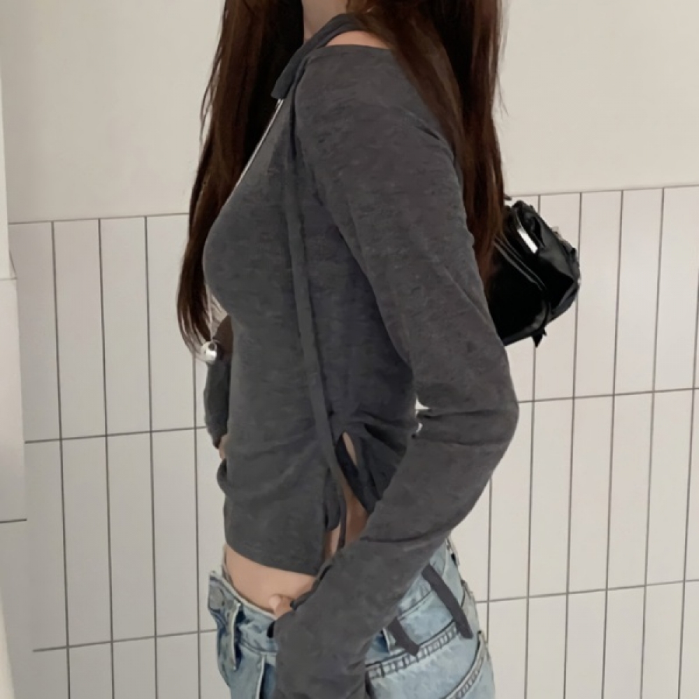 여성 봄 여름 데일리 펀칭 리본 니트