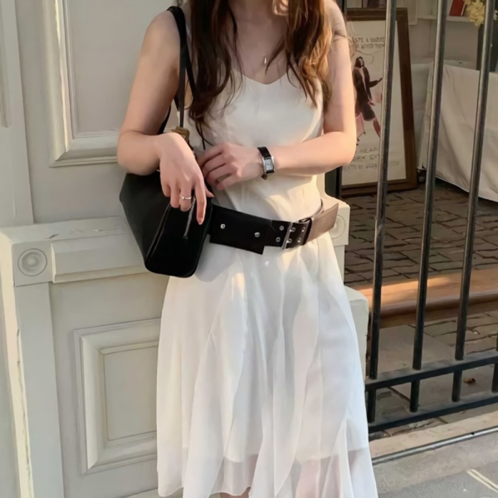 여성 봄 여름 언발 캉캉 끈나시 롱 원피스