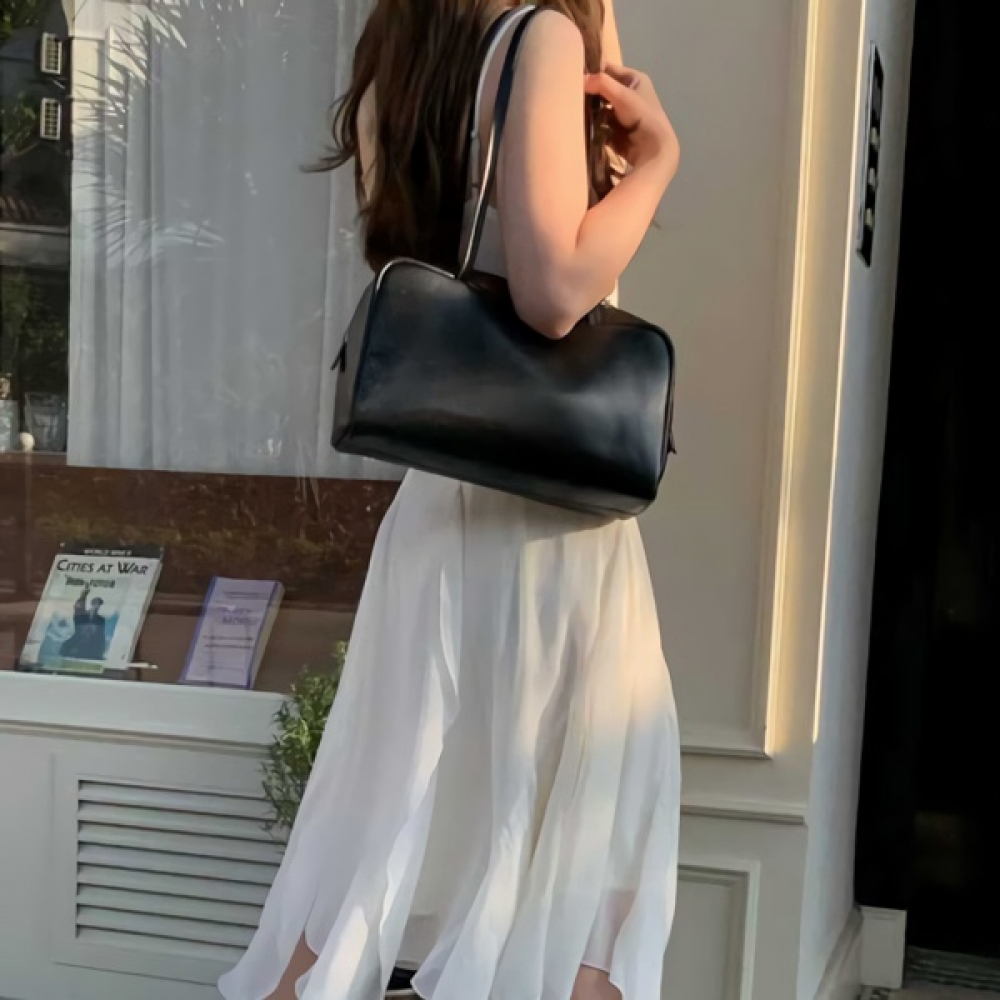 레이어드 사이드 리본 캉캉 끈나시 롱 원피스