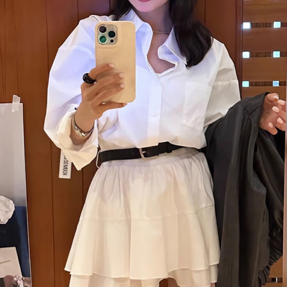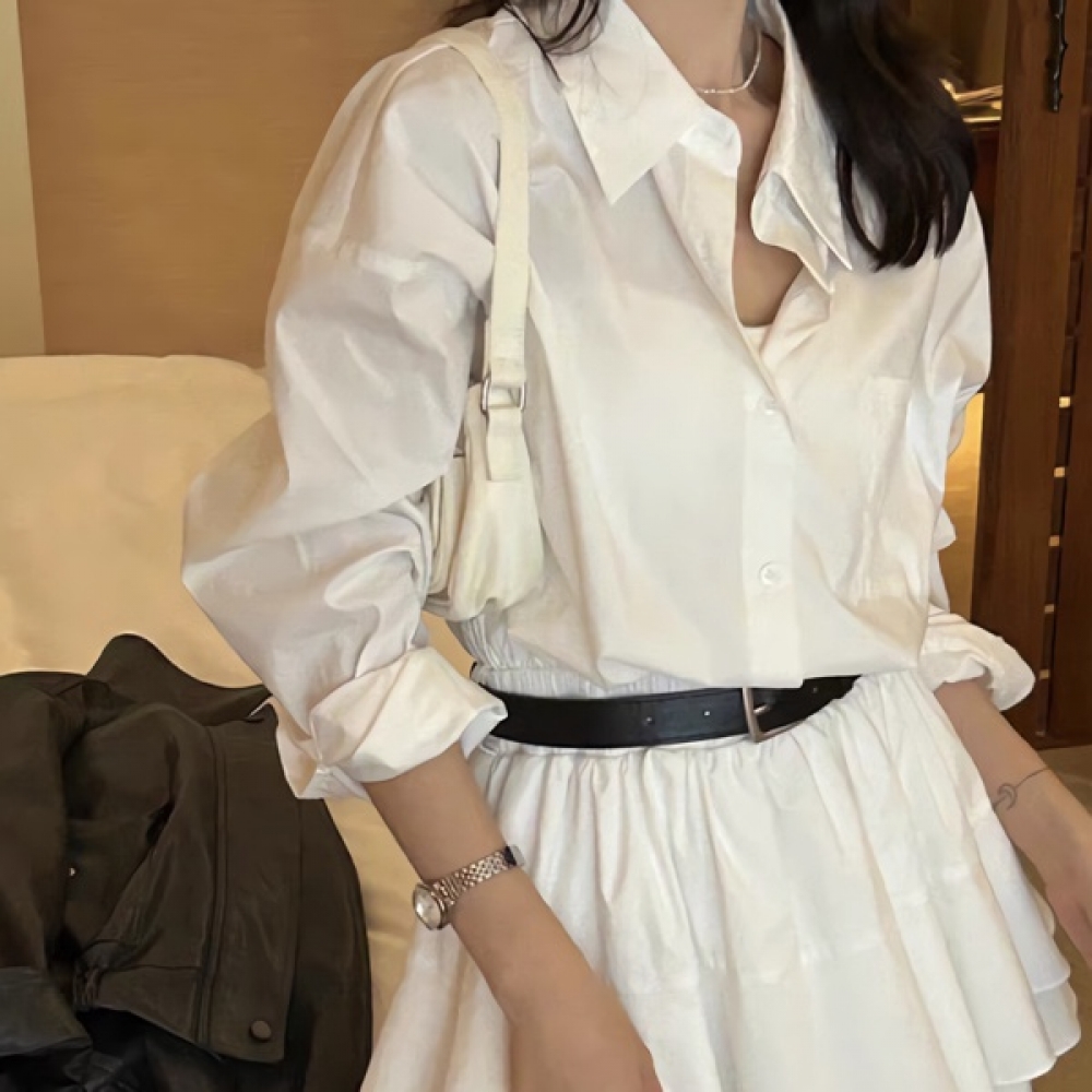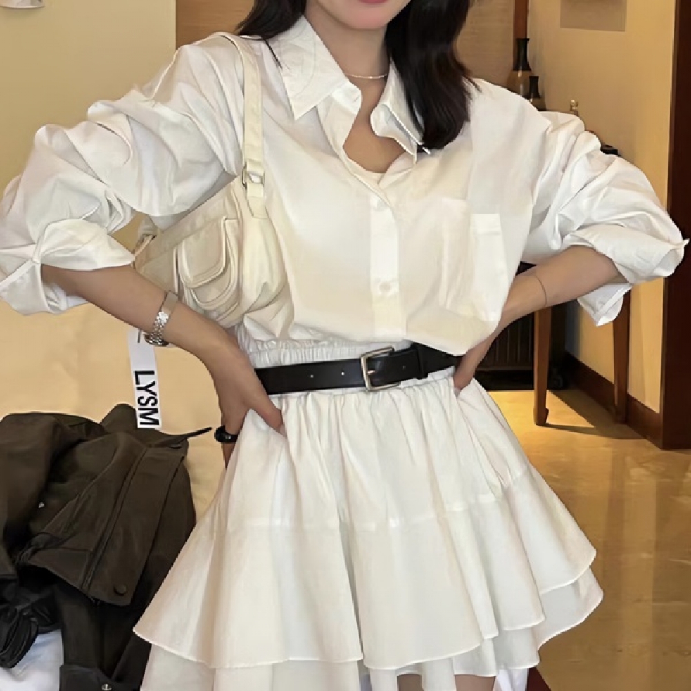 여성 봄 여름 셔츠 캉캉 벨트 미니 원피스