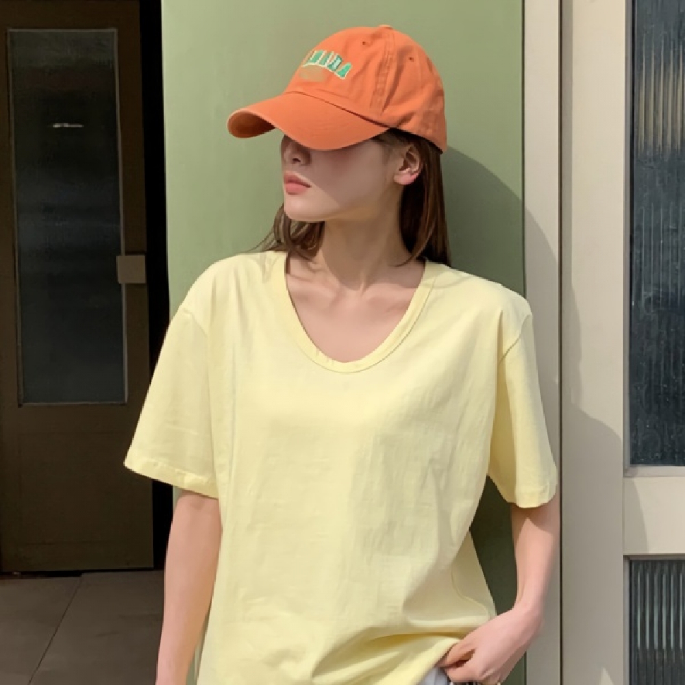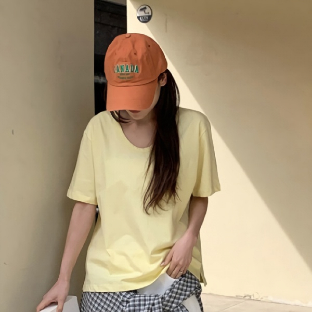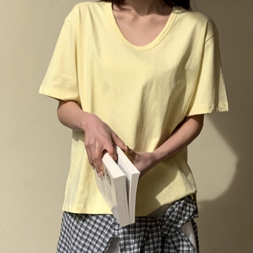 여성 여름 유넥 루즈핏 코튼 반팔 티셔츠