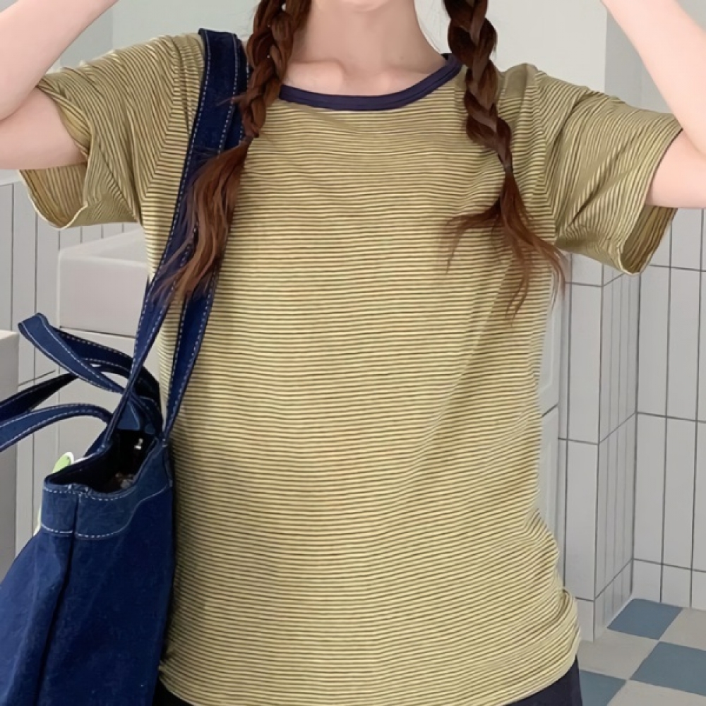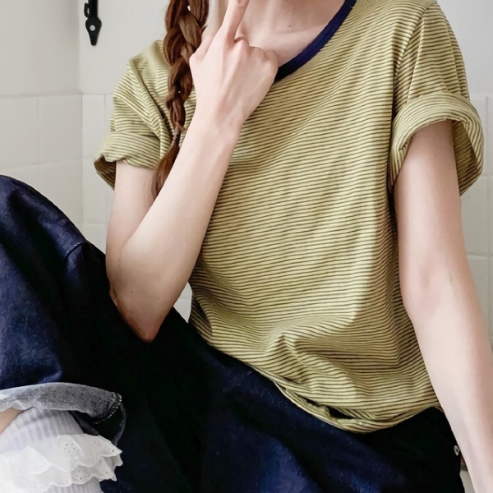 여성 여름 유넥 루즈핏 코튼 반팔 티셔츠