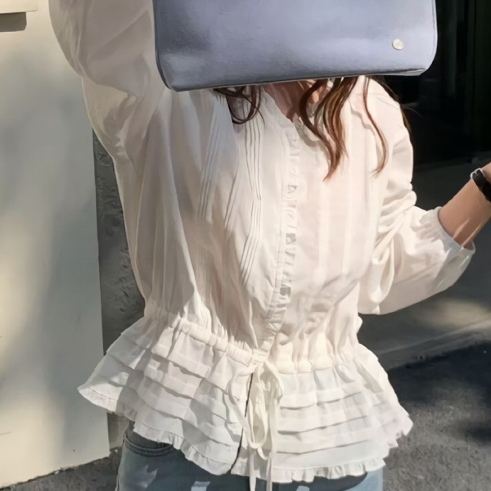 여성 봄 여름 핀턱 프릴 캉캉 블라우스