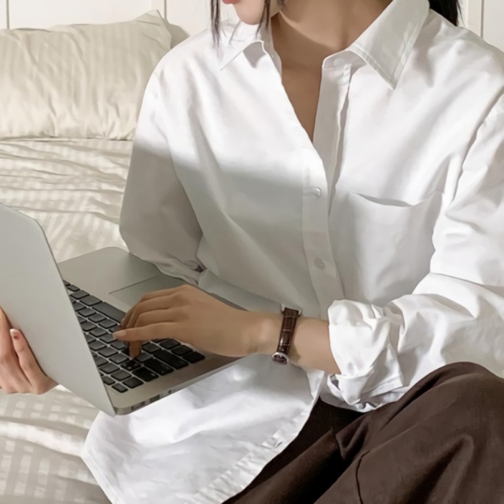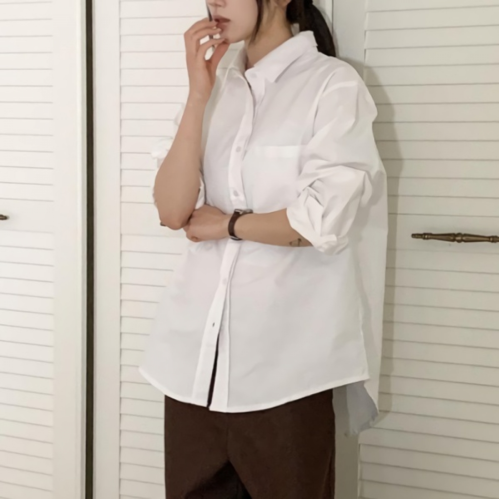 여성 봄 여름 오버핏 무지 포켓 코튼 셔츠