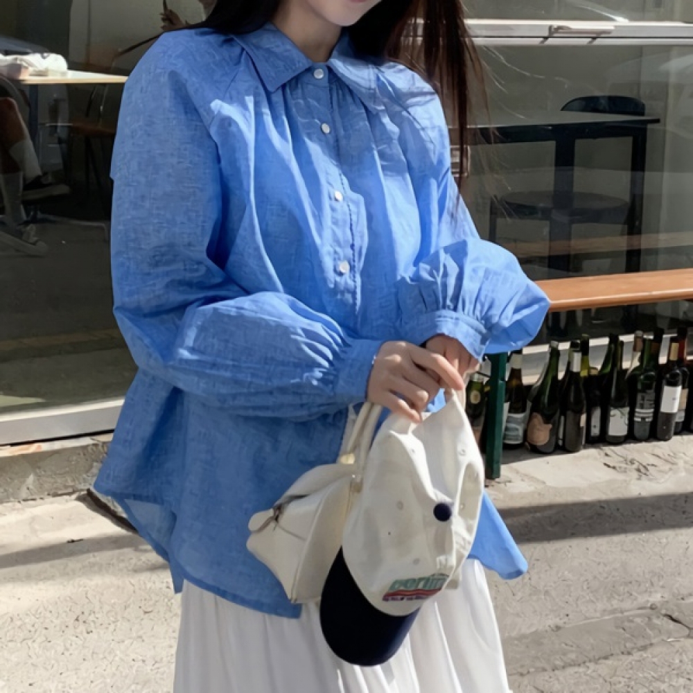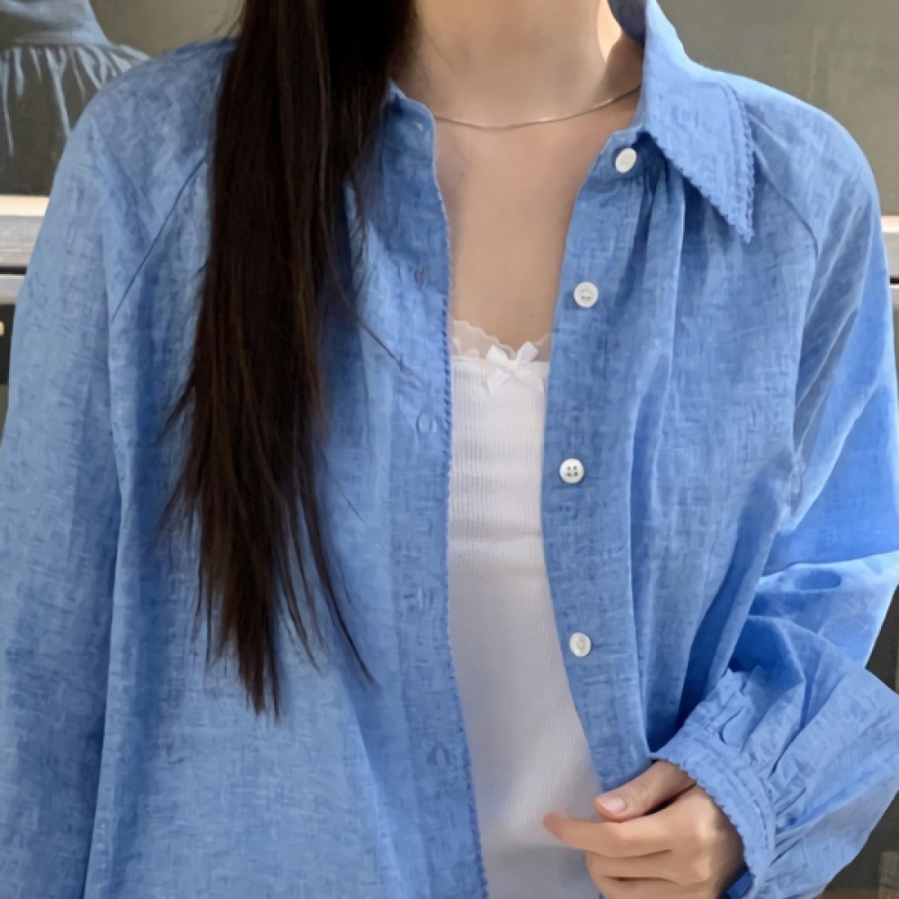 여성 봄 레이스 카라 린넨 오버핏 셔츠