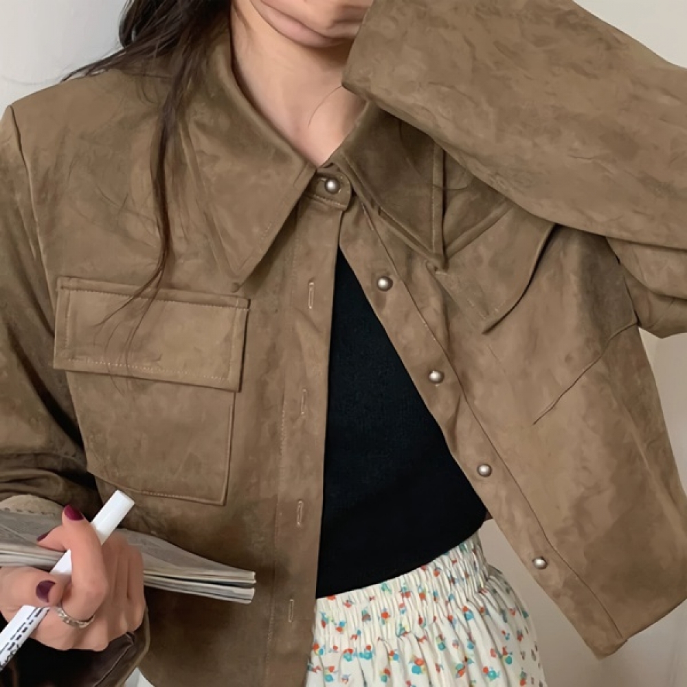 여성 봄 여름 데일리 스웨이드 크롭 자켓