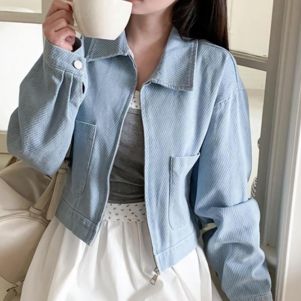 여성 봄 여름 포켓 카라 데님 숏 자켓