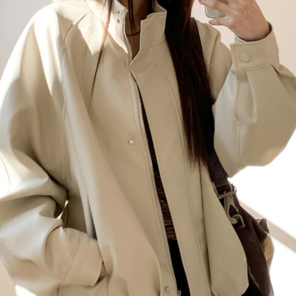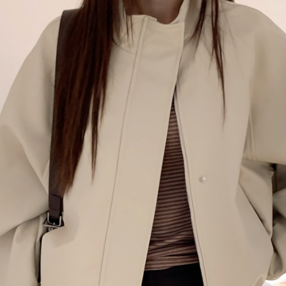 여성 오버핏 하이넥 레더 블루종 자켓