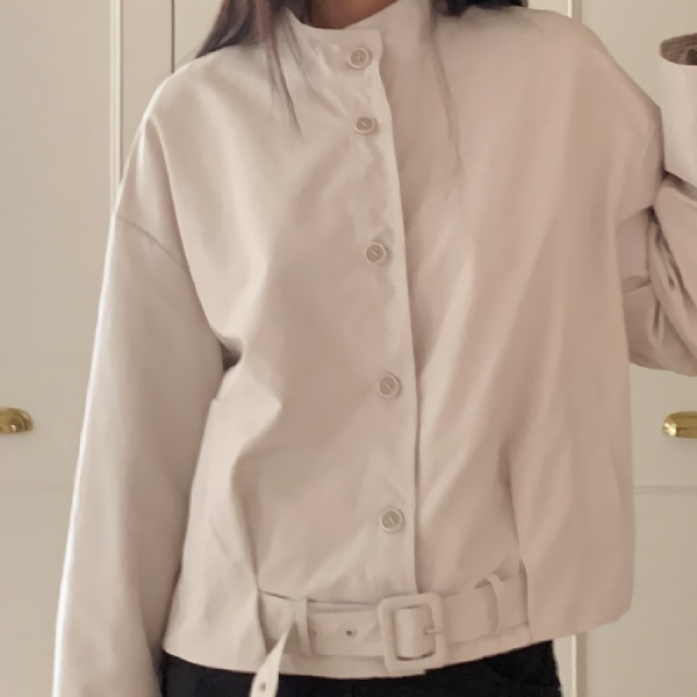 여성 하이넥 소매 배색 벨트 야상 자켓
