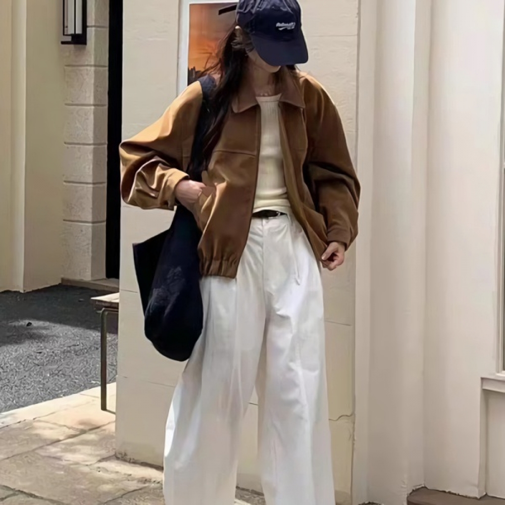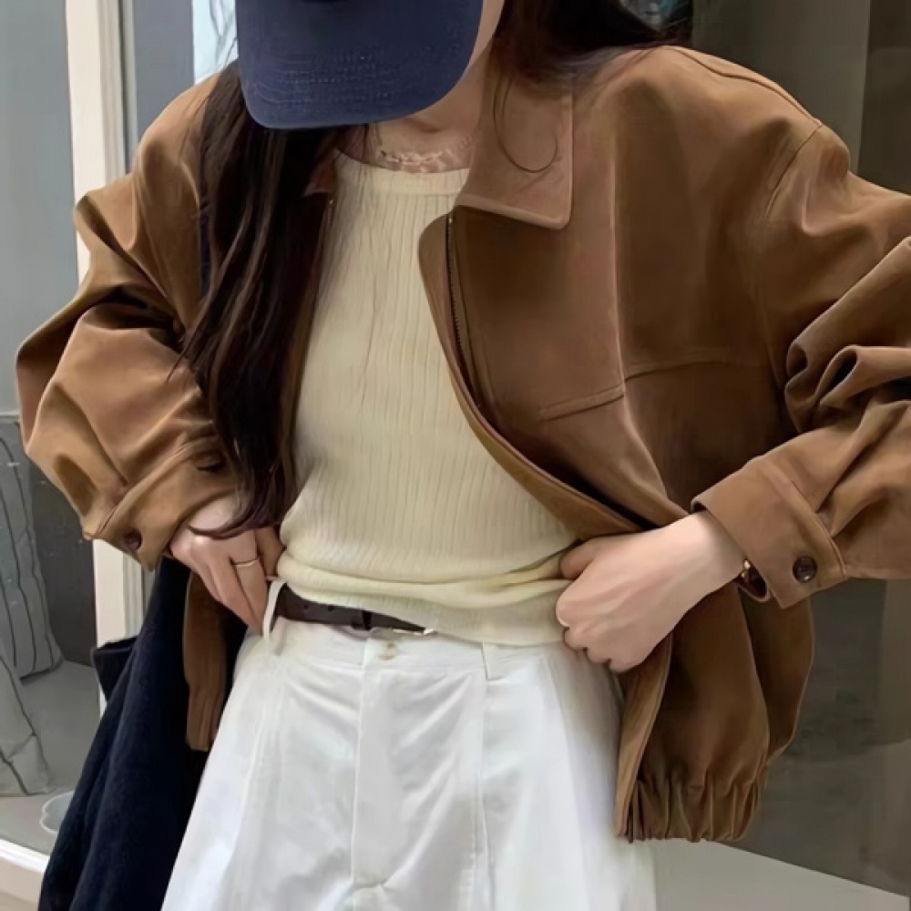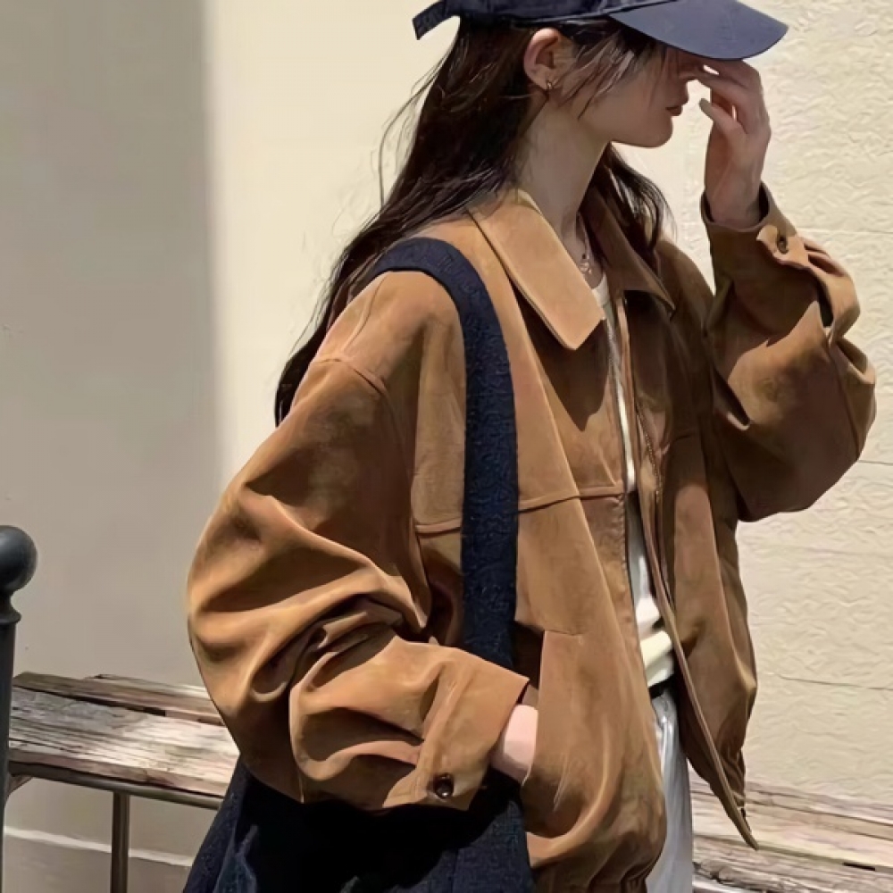 여성 봄 스웨이드 집업 루즈핏 점퍼