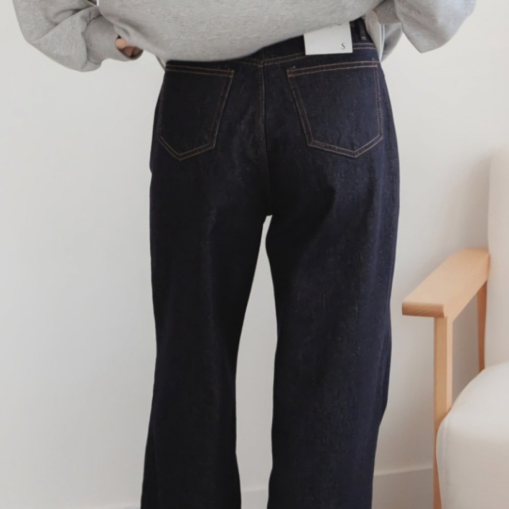 여성 스티치 일자핏 와이드 데님 팬츠