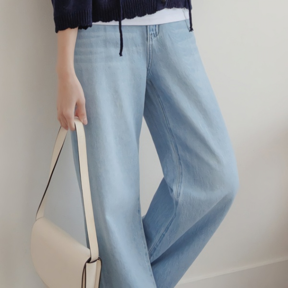 여성 워싱 스트레이트 와이드 데님 팬츠