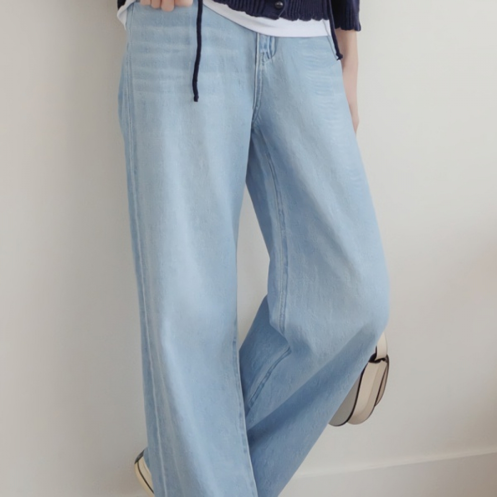 여성 텐셀 찰랑 세미루즈핏 연청 데님 팬츠