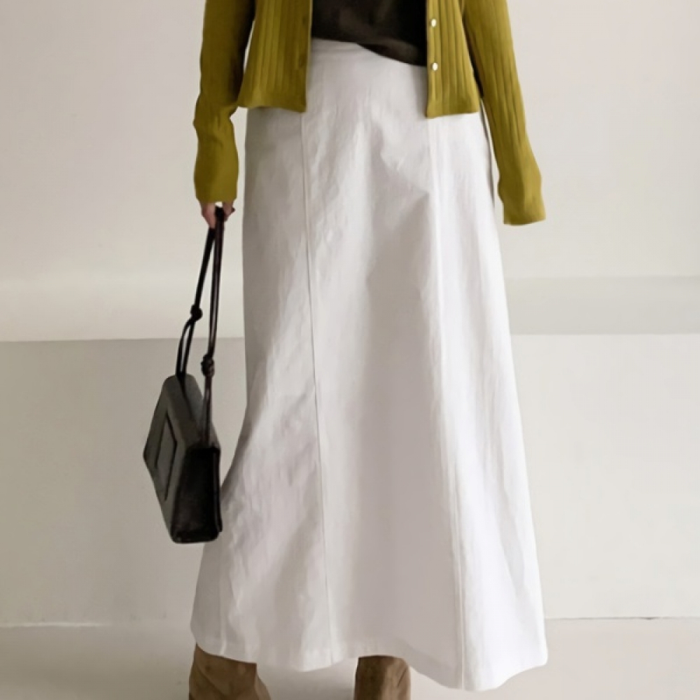 여성 체형커버 코튼 A라인 뒷밴딩 롱스커트
