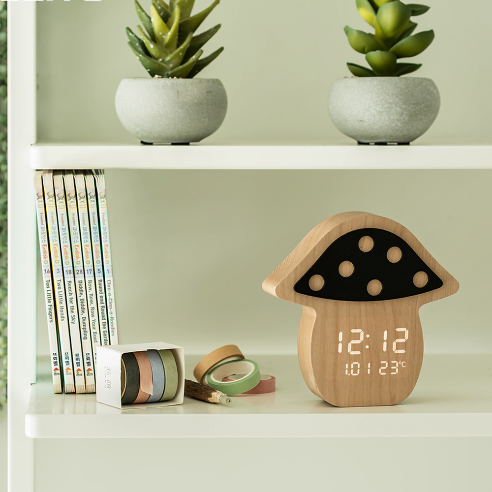 플라이토 우드 머쉬룸 LED 탁상시계 인테리어 무소음