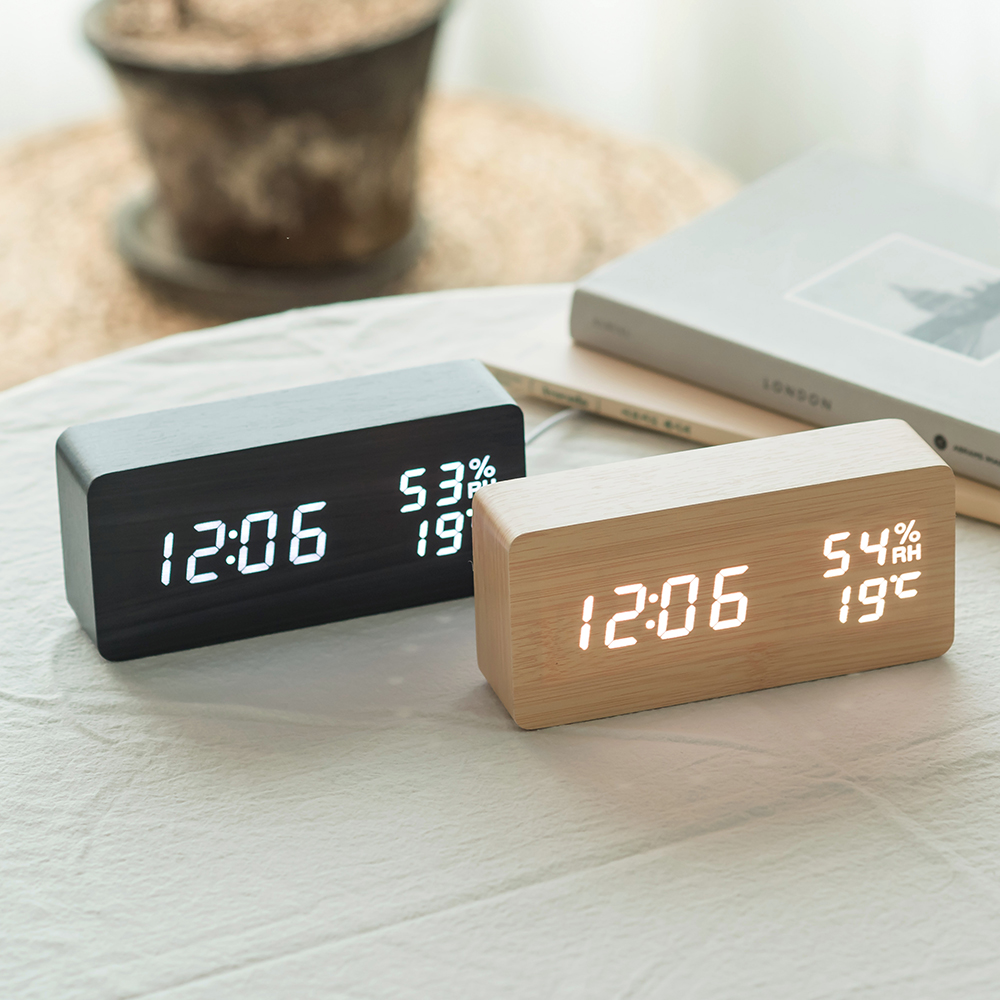 플라이토 우드 온습도 LED 탁상시계+USB아답터