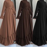 리본 디테일 러플 소매 쉬폰 맥시 드레스(3color) 교