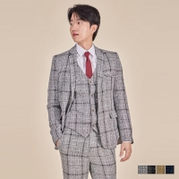 댄디 체크 남자 자켓 조끼 바지 정장세트(4color) 교