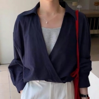 여성 가을 겨울 데일리 레이어드 랩 셔츠