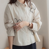 여성 겨울 꽃자수 루즈핏 크롭 남방 셔츠