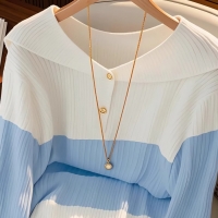 여성 스트라이프 배색 카라 레이어드 니트