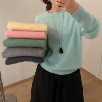 여성 겨울 캐시미어 울 라운드넥 니트