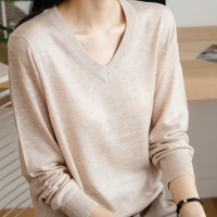 여성 겨울 데일리 캐시미어 울 브이넥 니트