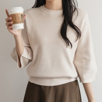 여성 겨울 베이직 카라 풀오버 칠부 니트