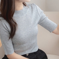여성 겨울 골지 반목 5부소매 반팔 니트