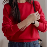 여성 겨울 울 캐시미어 라운드 심플 니트