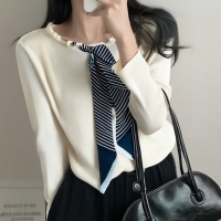 여성 가을 겨울 진주 타이 니트 탑