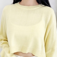 여성 코튼 로아 간절기 베이직 라운드 니트
