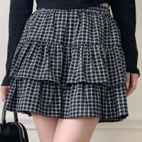 여성 겨울 캉캉 플레어 체크 미니 스커트