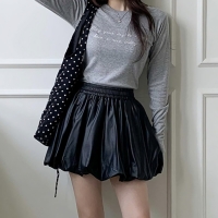 여성 포켓 레더 밴딩 벌룬 미니 스커트