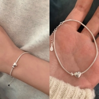 여성 s925 실버 하트 스네이크 체인 팔찌