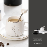 고양이 꼬리 손잡이로한 유니크 머그컵