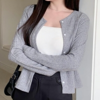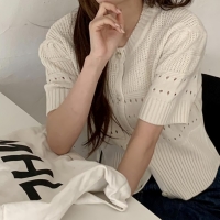 여성 봄 스카시 펀칭 반팔 니트 가디건