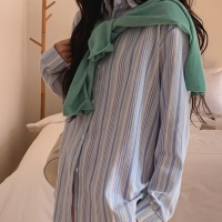 여성 탄탄 오버핏 스트라이프 카라 셔츠