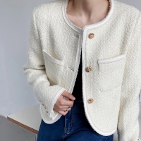 여성 봄 여름 데일리 울 트위드 크롭 자켓