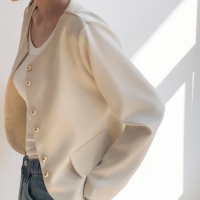 여성 봄 여름 포켓 노카라 금장 버튼 자켓