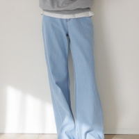 여성 스트라이프 일자 세미 와이드 데님 팬츠