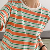 여성 배색 스트라이프 레이어드 슬림 티셔츠