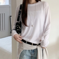 여성 봄 유니크 배색 라운드 롱티셔츠