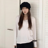 여성 부드러운 모달 코튼 기본 라운드 티셔츠